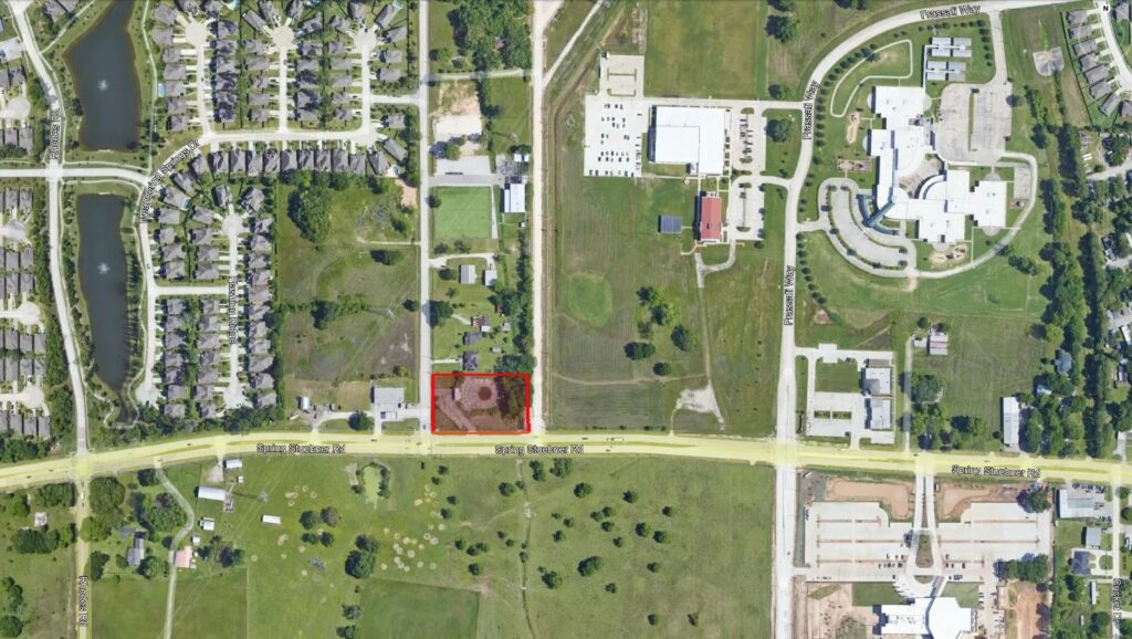 Spring Stuebner was recently widened to four lanes. The property is adjacent to Frassati Catholic High School and Zwink Elementary School. It sits across the street from Fox Elementary School and Champion Forest Baptist Church is nearby.