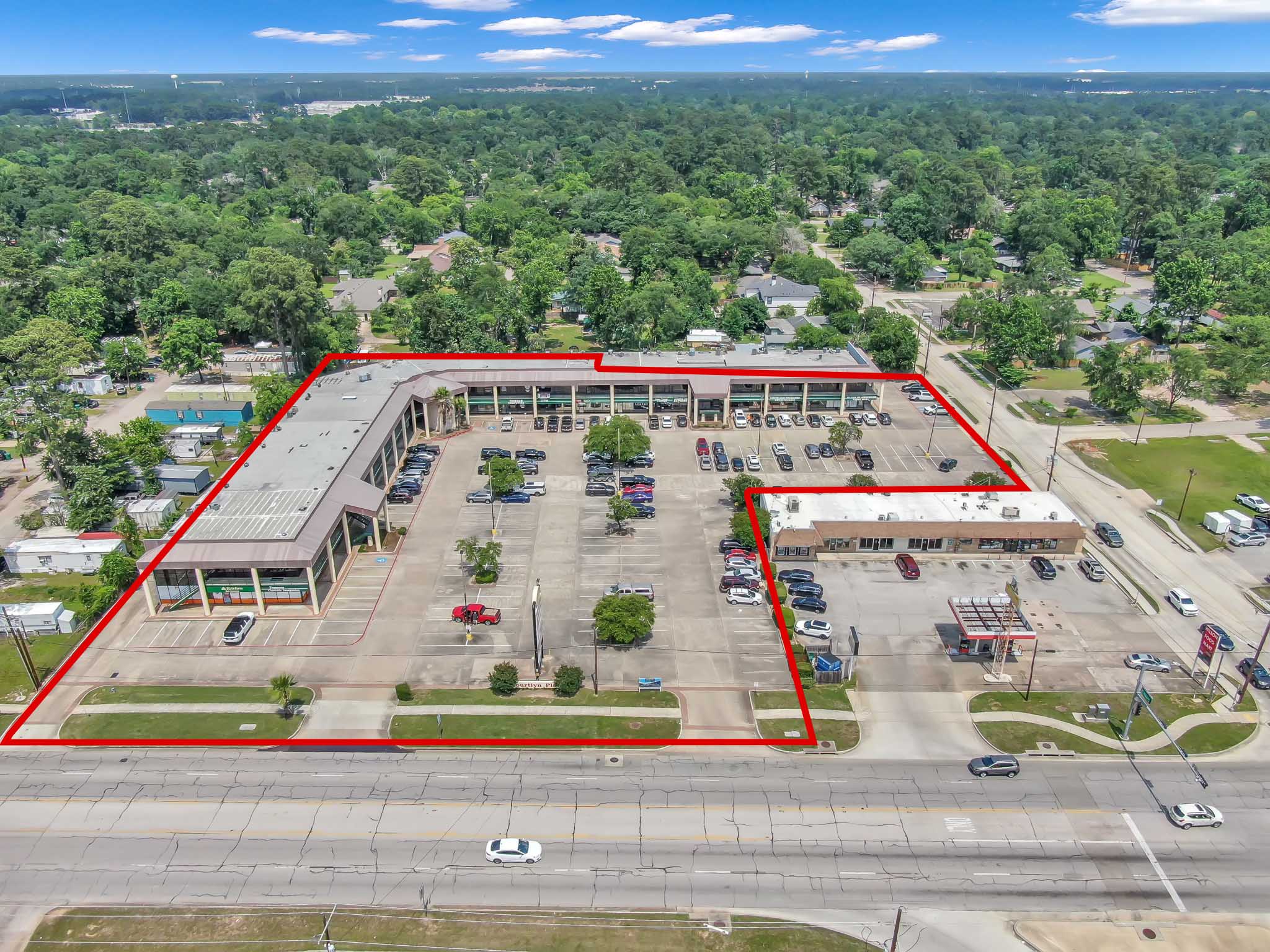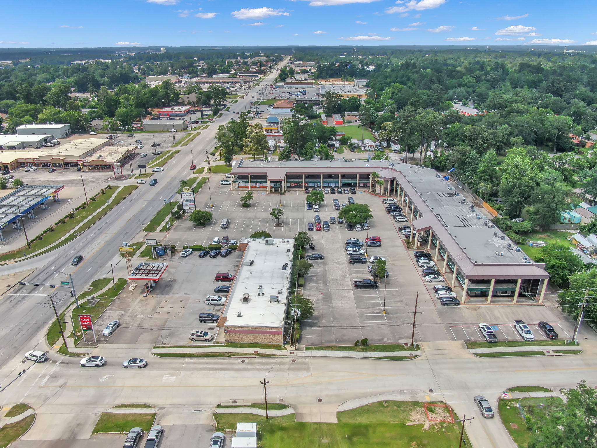 Located at 1712 North Frazier Street (Hwy 75) at the corner of Wilson Road, this highly visible retail and office center sits at one of Conroe’s busiest intersections. Less than one mile from I-45, the property enjoys steady daytime traffic, strong neighborhood density, and convenient access to major routes including Hwy 75, I-45, N Loop 336, and FM 3083.