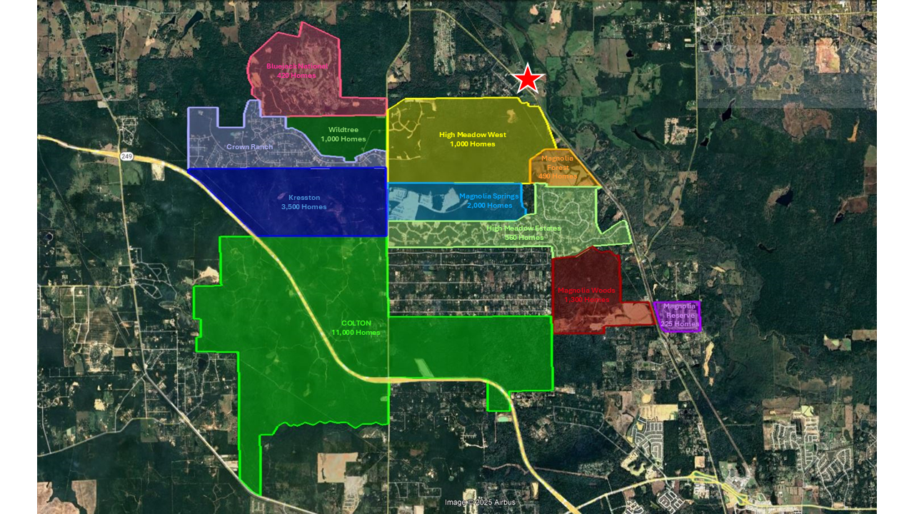 This parcel is an excellent opportunity for a Buyer to purchase for land/hold investment or development opportunity. The area is rapidly growing with many very large residential neighborhoods under construction. The tract may be served by Dobbin Plantersville Water Company.